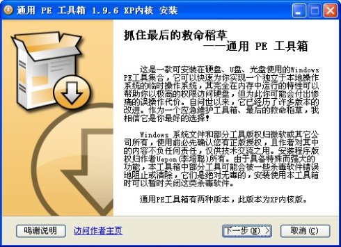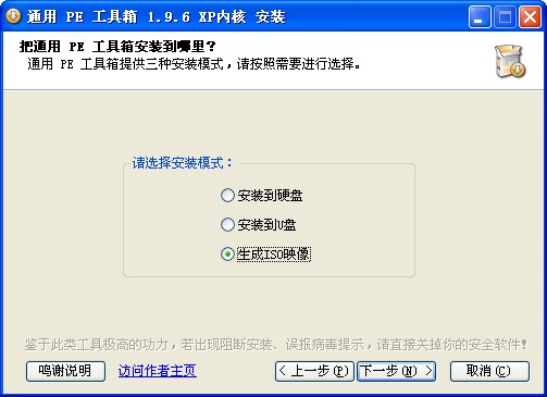 该软件就是网络上广泛流传的“通用PE工具箱”,也就是本博文“WinPE启动U盘工具箱”的原始软件。该软件为.exe可执行文件,提供把WinPE安装到硬盘、安装到U盘、生成ISO文件三种选择方案供大家使用,让制作更加灵活。有兴趣的朋友,可以尝试尝试。