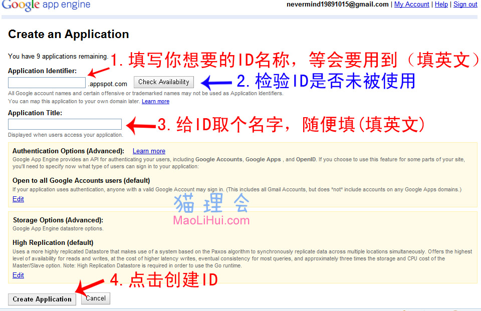 第二步: 创建Google App Engine的ID